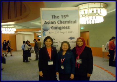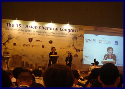 การเข้าร่วมประชุม 15th Asian Chemical Congress (15ACC) วันที่ 19–23 สิงหาคม 2556 ณ Resort World Sentosa, Singapore ผู้เข้าร่วมประชุมในฐานะผู้แทนสมาคมเคมีแห่งประเทศไทยฯ