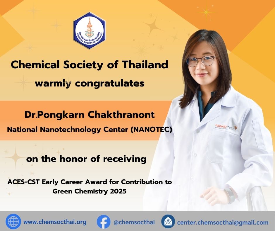 ประเภทที่ 5ACES-CST Early Career Award for Contribution to Green Chemistry 2025