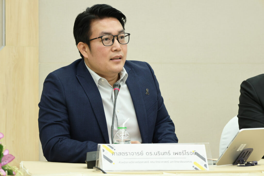 วันที่ 14 มกราคม 2569 สมาคมเคมีแห่งประเทศไทยฯ ร่วมกับ มหาวิทยาลัยนเรศวร จัดแถลงข่าวการจัดการประชุมวิชาการนานาชาติ Pure and Applied Chemistry International Conference 2026 (PACCON 2026) ภายใต้หัวข้อ “The Global Future of Chemistry with AI” โดยมี รองศาสตราจารย์ ดร.ศรินทร์ทิพย์ แทนธานี รักษาราชการแทนอธิการบดีมหาวิทยาลัยนเรศวร และ ศาสตราจารย์ ดร.วุฒิชัย พาราสุข นายกสมาคมเคมีแห่งประเทศไทยฯ ร่วมกันแถลงข่าวการจัดการประชุมวิชาการนานาชาติ PACCON 2026 ณ อาคารภาควิชาฟิสิกส์ คณะวิทยาศาสตร์ มหาวิทยาลัยนเรศวร และมีคณะกรรมการบริหารสมาคมเคมีแห่งประเทศไทย คณาจารย์ นิสิต นักศึกษา มหาวิทยาลัยนเรศวร เข้าร่วมงานแถลงข่าวในครั้งนี้ด้วย สำหรับการประชุมวิชาการนานาชาติ PACCON 2026 กำหนดจัดระหว่างวันที่ 12-14 กุมภาพันธ์ 2569 ณ ศูนย์แสดงนิทรรศการและการจัดประชุมนานาชาติสมเด็จพระนเรศวรมหาราช KNECC มหาวิทยาลัยนเรศวร อ.เมือง จ.พิษณุโลก โดยมีวัตถุประสงค์เพื่อเผยแพร่ความรู้ทั้งในส่วนของงานวิจัยพื้นฐาน งานวิจัยประยุกต์ และนวัตกรรมในระดับนานาชาติ รวมถึงการสร้างเครือข่ายความร่วมมือทางวิชาการในระดับชาติและนานาชาติ โดยสามารถดูรายละเอียดเพิ่มเติมและลงทะเบียนได้ที่ https://www.paccon2026.com/ ทั้งนี้สามารถสอบถามข้อมูลเพิ่มเติมได้ที่ภาควิชาเคมี คณะวิทยาศาสตร์ มหาวิทยาลัยนเรศวร โทรศัพท์ 0-5596-3401