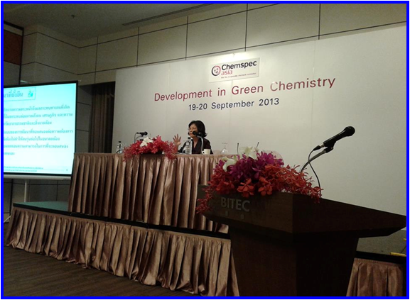 โครงการประชุมหัวหน้าภาควิชาเคมีแห่งประเทศไทย ครั้งที่ 2 เรื่อง “เคมีสีเขียว โอกาสสำหรับเศรษฐกิจสีเขียว” (Green Chemistry : Opportunity for Green Economics ) และ SAFETY & RESPONSIBLE CARE CONFERENCE จัดโดย สมาคมเคมีแห่งประเทศไทยฯ และสาขาเคมี สมาคมวิทยาศาสตร์แห่งประเทศไทยฯ ร่วมกับ ภาควิชาเคมี คณะวิทยาศาสตร์ มหาวิทยาลัย เกษตรศาสตร์ เมื่อวันที่ 19-20 กันยายน 2556 ณ ศูนย์ประชุมแห่งชาติไบเทค บางนา ทั้งนี้ได้รับเกียรติจากวิทยากรมาบรรยาย ซึ่งได้แก่