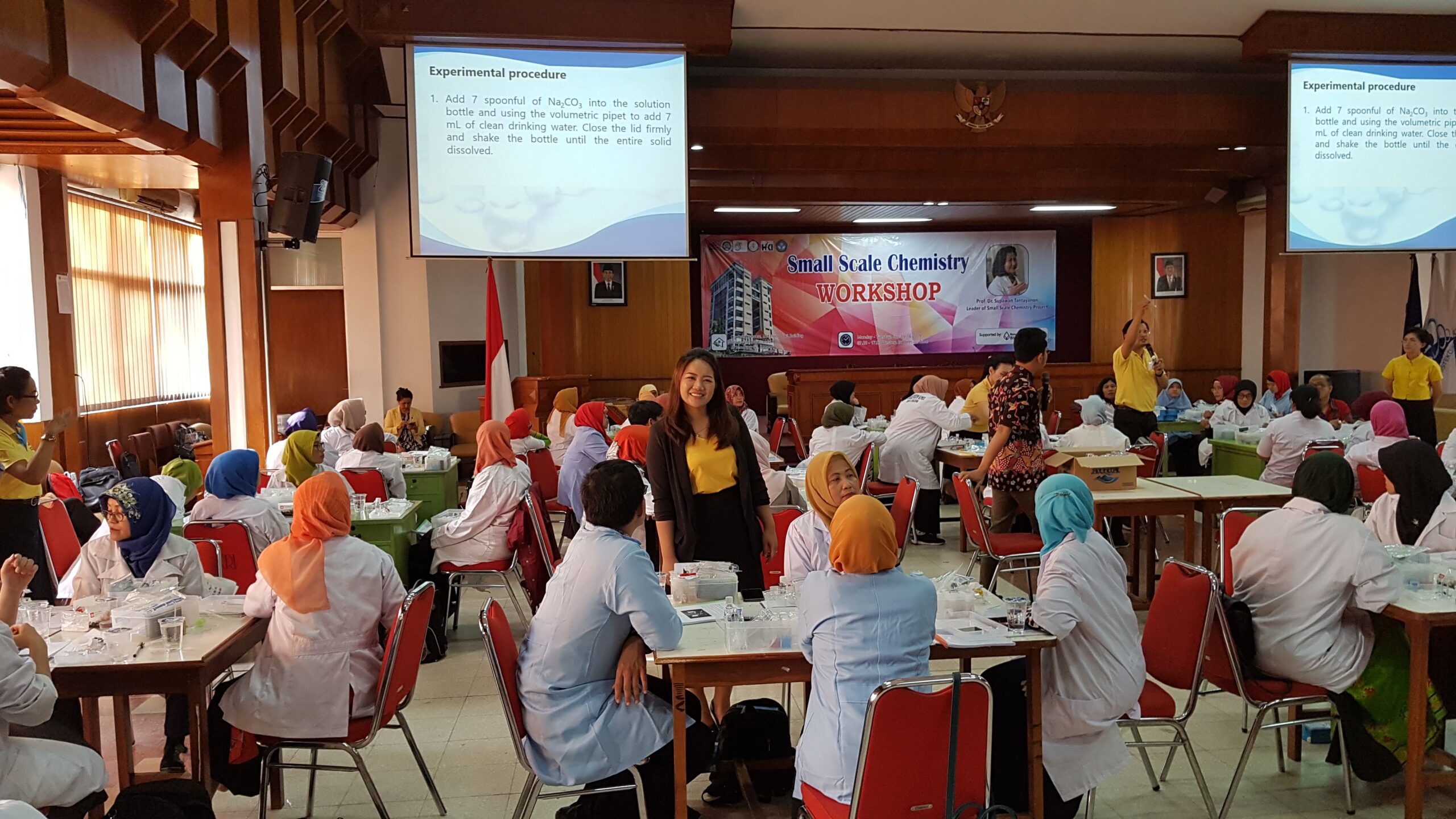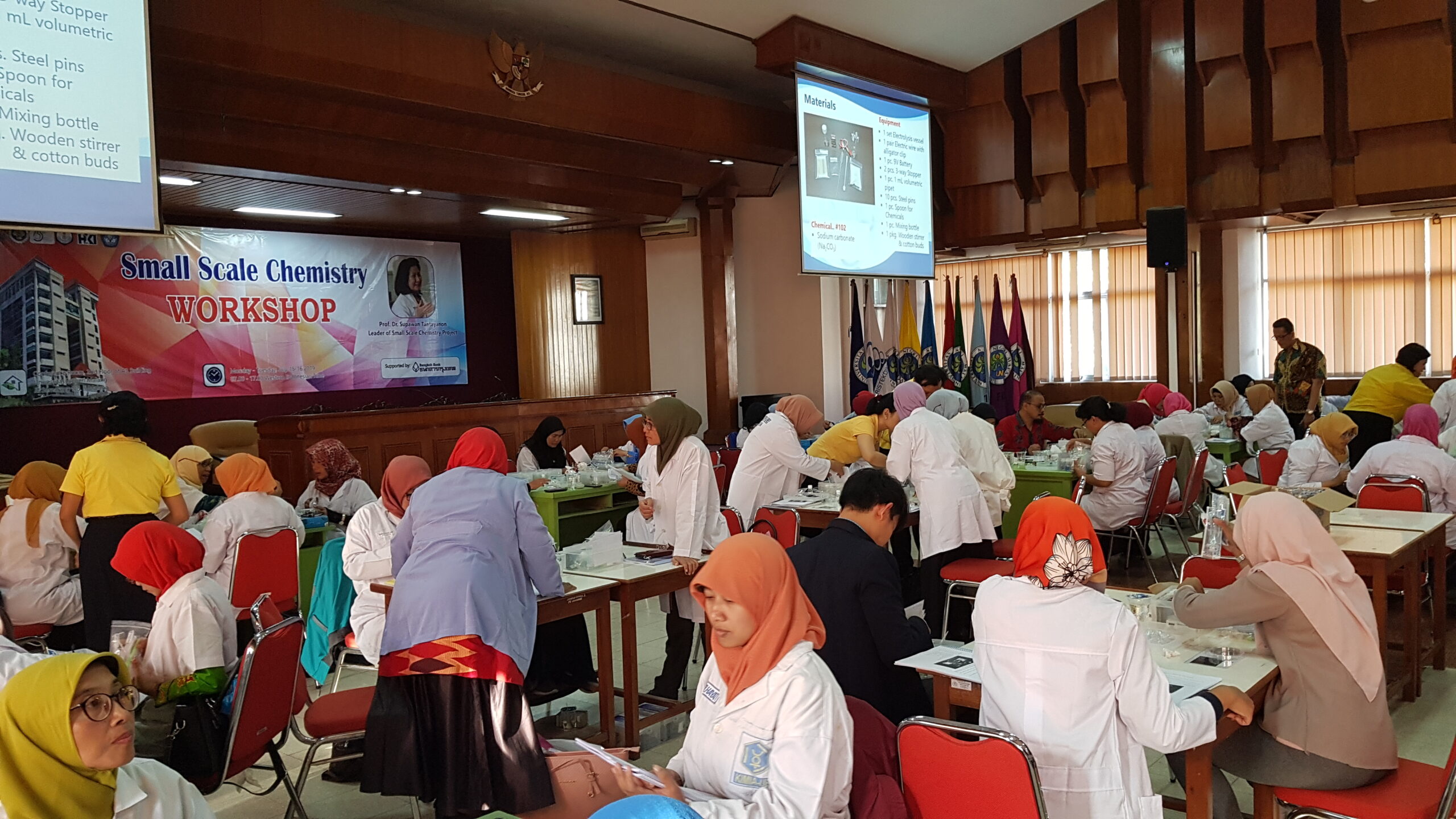 The BBL-CST Small Scale Chemistry Training for Secondary School Teachers in Indonesia Project was held on July 15-16, 2019, at Conference Room, 2nd Floor of A3 Building, Universitas Negeri Malang, Malang, Indonesia, with 100 participants joining the event.